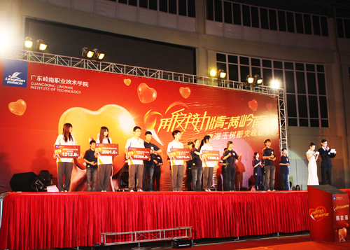岭南新闻网 “用爱接力、情满岭南——青海玉树地震赈灾晚会”4月29日在岭南职院体育馆举办。广州岭南教育集团董事长贺惠山、总裁钟燕锋、副总裁韩利庆等集团领导,岭南职院校长俞仲文、副校长李峻、党委书记丁纪平等领导出席晚会。 现场内“爱如潮水,托起玉树美好明天。传承汶川大爱,携手共济青海。”的二十四个如生命一样鲜活的大字,传递了岭南师生与玉树灾民同在,共同撑起生命天空的坚强信心。岭南三千名多师生摇着荧光棒,举着“心系玉树、加油”的发光字样,默默为玉树祈福。 “让世界充满爱、玉树不折、大爱岭南、玉树坚强,一切都会有、一切都会再来,愿世界充满爱、温暖所有冰冷的人。”会场入口,许愿墙上留下师生上百张祝福条。 情系玉树,大爱岭南,在晚会现场共募捐到12277.7元。地震发生后,师生员工积极捐款筹集资金,支援灾区抗震救灾。短短的几天时间,岭南学生捐款78930.7元和港币100元,岭南教职工捐款89875.9元,总计捐款人民币181084.3元和港币100元。 “玉树发生地震灾害后,集团、学院第一时间发出了捐款倡议。在灾害面前,岭南师生心系灾区,积极捐款支援灾区。一方有难、八方支援,这是我们民族克服困难的希望所在。我们相信玉树一定能够战胜这场灾难。”岭南职院校长俞仲文饱含深情的话语,使师生深受鼓舞。 “所有的人都慷慨解囊,希望用我们自己滚烫的心去温暖灾区的人们,让玉树的天空重开笑颜。”岭南职院副校长李峻说。 守望生命,心手相牵。舞蹈《那些孩子》传递爱的希望,表达了岭南师生对玉树的未来充满希望。手语表演《感恩的心》默默祈福,感谢帮助玉树的人们。“我学手语有一个星期多了,我只为了能感化人们,表达心中的那份爱。”岭南职院学生处负责人卜佳锐说,我们岭南每天都充满惊喜,充满爱,希望玉树灾民坚强起来。 “孩子,我们看见了。大难当头,一个民族不倒得青春偶像。”集团财务总监周惠莲、岭南职院校长俞仲文、岭南继续教育与培训学院副院长刘国章、岭南现代技工学校常务副校长童国梁等七位领导深情的朗诵《相信》,表达了对玉树80后、90后的殷切期望和充分的肯定。 “你的悲伤触动了千万个牵挂的心,我就是你,你就是我,用爱照亮这片热土”《亲爱的,请放心》09音乐表演班演绎了岭南学子对玉树的爱。 晚会结束,贺惠山董事长接受记者采访时说:“衷心祝福玉树人民能早日重建家园。希望岭南师生都有大爱在心,生活在爱的岭南,传播岭南大爱精神,与玉树人民心连心,携手共建美好家园。” 《岭南教育》记者邱秋云 王晓洁 摄影记者黎雨豪 傅浩洋 |