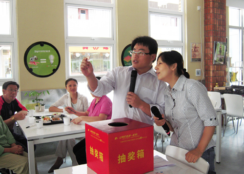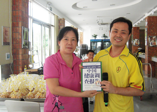 工会为教职工“集体庆生”作者:佚名 信息来源:本站原创 点击数: 更新时间:2010-5-21 广州岭南教育集团副总裁、工会主席关婉勤(左)向抽奖中抽出的生肖与自己的生肖相吻合的员工颁奖。奖品是《中国健康调查报告》一书。 教职工孟祥超(左)生日抽奖