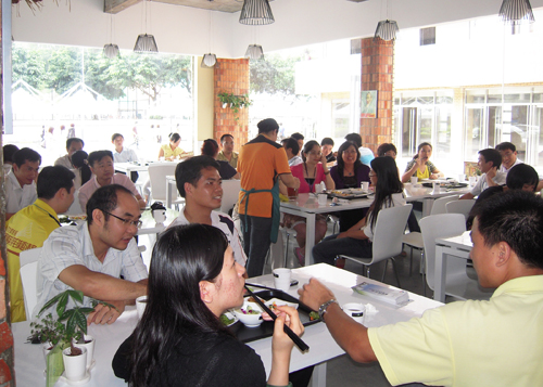 岭南新闻网 5月20日下午,“素味相逢”素食馆内响起生日歌,广州岭南教育集团工会给五月出生的三十多位教职员工“集体庆生”。 “在生日当天吃素,让众生为您庆生,更能感召吉祥,一生如意。”伴随着悠扬的乐曲声,一个没有生日蛋糕的生日会在素食馆中进行着,“吃肉必然会导致杀生,用素食来庆生,是最好的感恩方式,为天下母亲祈福。” 广州岭南教育集团副总裁、工会主席关婉勤说。 教职工孟祥超生日抽奖获头彩,他激动地说,过生日头一次这么素雅、这么有规模,工会组织生日会让我倍感幸福。他现场还朗诵打油诗一首“岭南关爱你我她,素食健康靠大家,来到此地像个家,明天我要更爱她”让现场气氛倍加“甜蜜”愉悦。 《岭南教育》记者谢谢 傅浩洋