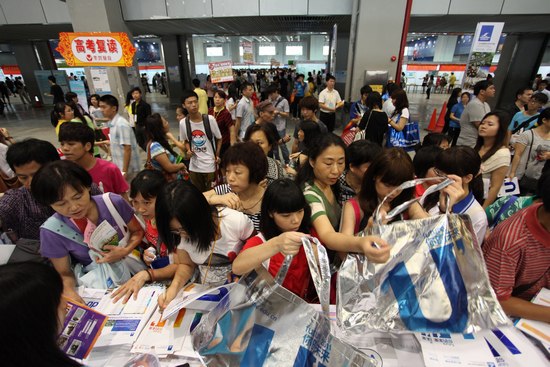 5万余人挤爆招生咨询会 岭南环保袋遍布全场作者:刘冬梅 信息来源:本站原创 点击数: 更新时间:2011-7-4 岭南新闻网 6月28日,广州高校招生咨询会在琶洲会馆举行,考生及家长接踵而至,近300所高校和助学机构被团团围住。据不完全统计,当日全天进场咨询的考生及家长有5万多人,堪称史上最火爆高招会。广东岭南职业技术学院18米大展位被挤得水泄不通,成全场3B类院校最受瞩目“摊位”。 “今年带去的6000多份资料都不够,在上午就基本全部派发完了,放眼望去,咨询会全场几乎都是岭南的环保袋在移动,很多学生和家长都是拎着岭南的袋子装着其他院校的资料。”招生就业办副主任陈健彬谈起当天印象最深的一幕时说。 据了解,今年的招生咨询会从早上八点半持续到下午四时左右,招生就业办派出工作人员60余人。陈健彬副主任介绍,今年咨询会的亮点诸多,较往年而言,在展位布置上更有特色,主题更鲜明,大投影播放学校宣传片、360°看校园、现场职业测评、别出心裁的招生简章和创意独特的环保袋都吸引了众多学生和家长前来,还有不少学校也特地前来参观和了解我们的资料和学校情况。据不完全统计当日接待考生和家长近万人次,录取分数线、专业设置、就业情况、师资力量、校园环境和住宿条件是学生和家长最为关心的,前来咨询的考生和家长多来自珠三角地区,气氛十分热烈。 不少前来咨询的家长和考生表示,很想报读岭南,但是不确定能否被顺利录取,岭南职院地理位置优越,社会声誉好,报考三B院校首选这学校,让孩子读这学校放心。也有家长事先就对岭南职院作了全面的了解,专门针对学院专升本、校企合作和就业等方面来现场再作咨询。针对家长和学生的这些疑问,招生就业办建议,今年岭南职院估计还是会第一志愿完成招生录取计划,文理科录取分数线均可参照去年。 “今年全省有9个地市举行了高校招生咨询会,我们学校都参加了,总体情况都比较理想,而且在广州表现得最明显。从现场来看,我们学校咨询的人数最多,家长和学生对现场咨询工作的满意度也很高。”陈健彬副主任说。 (文/刘冬梅 图/黄镇仕) |