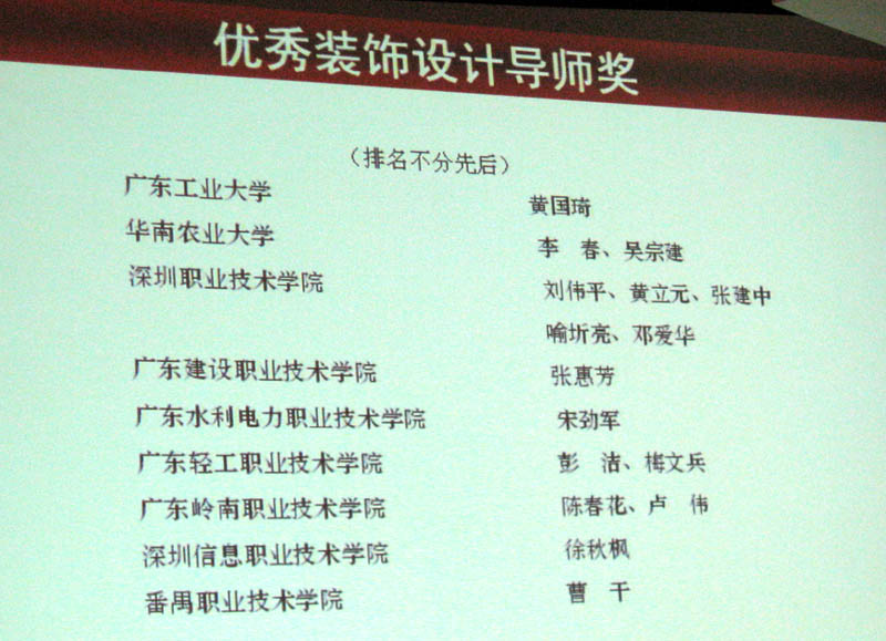 广东省优秀装饰设计教育院校奖组织奖: ■广东岭南职业技术学院 | |||