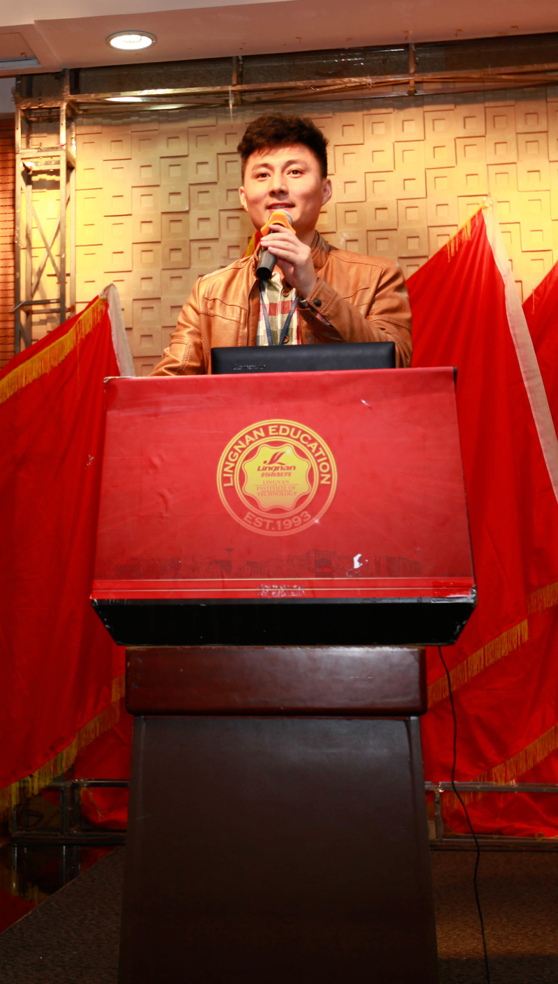 年12月1日,广东岭南职业技术学院艺术与传媒学院表彰暨换届大会在图书馆五楼报告厅顺利召开。艺术与传媒学院党总支书记魏忠正老师、团总支书记楼淦老师、辅导员朱青老师,黄洁老师,赵丹丹老师,潘庆彬老师,黄炫翰老师,黄俊杰老师和团学各部门学生干部、各年级学生代表等出席了本次大会。大会在隆重的《义勇军进行曲》中拉开了帷幕。首先,党总支书记魏忠正老师为大会致开幕词,随后,艺术与传媒学院第十届团总支常务副书记叶晓琳、学生会主席何威威分别总结了2013-2014学年我院共青团、学生会工作,在报告中不仅向在场的所有人展示了一年来艺术与传媒学院所取得的骄人成绩,同时也指出了在过往工作中的瑕疵。紧接着学生会委员、部长、干事在音乐声中上台领取了象征着做出杰出贡献的荣誉证书。随即进入了本次大会的高潮,参与竞选的人员做竞选演讲。他们分别就自己对学生会的认识,以及在过去工作中取得的优异成绩,对未来工作的展望等方面做出了激情的演讲。演讲过后,秉承公正公平的原则,全体人员对竞选人进行现场投票。