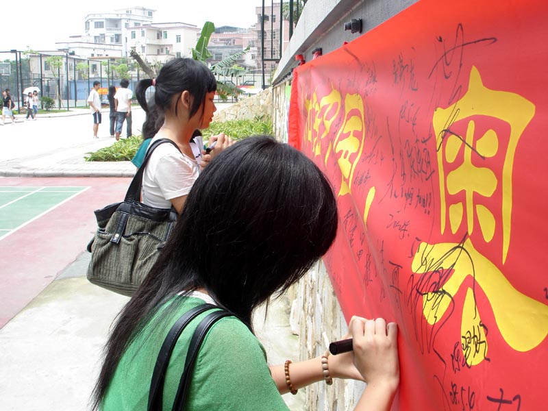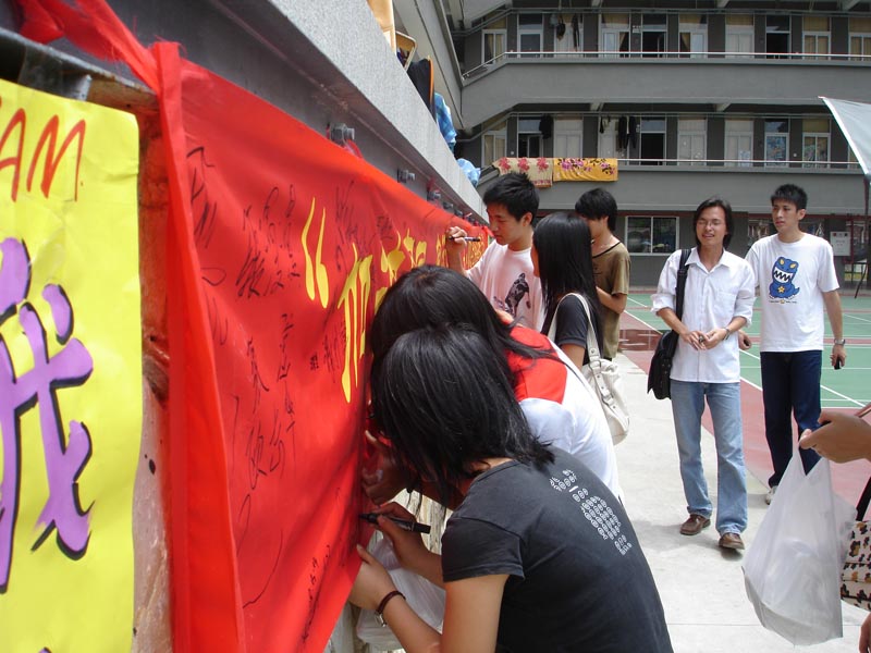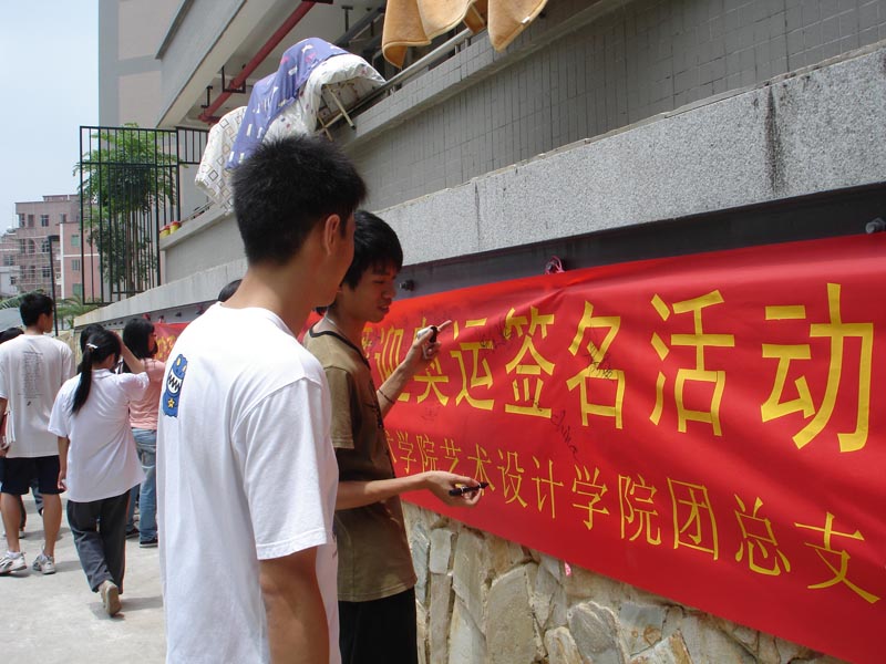 这一天真的很热闹,纷纷有许多热情的同学来签名支持奥运,证明了同学们是很有爱国之热情的!!