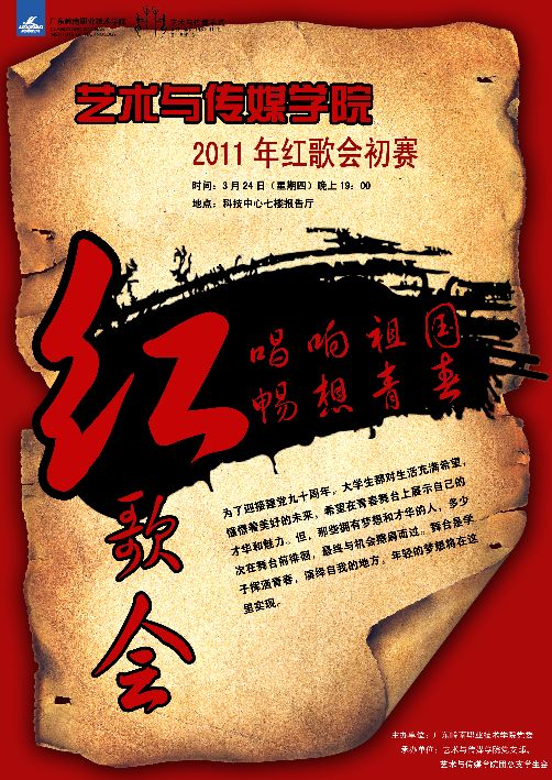 2011年3月24日,艺术与传媒学院“红歌会”初赛在科技中心七楼报告厅举行。七支参赛队伍在比赛中都有不同的特色和风格,充分的展现出属于自己团队的风采。 |
