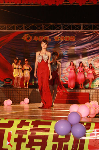 2009年11月17日晚上7时,一场由艺术与传媒学院献上的学生原创秋季时装发布会在学院东区篮球场举行,共80多位学生设计师设计的180多套服装在此展示。为祖国母亲六十华诞献礼,为艺术与传媒学院成立十周年献礼。 本次庆典晚会暨学生原创作品发布会得到了学院各级领导的热切关注和大力支持,学院党委丁纪平书记代表学校为活动致辞,艺术与传媒学院办公室主任魏忠正及07、08、09的学生代表分别代表学院教师和学生上台为艺术与传媒学院成立十周年送上祝福。艺术与传媒学院余克敏院长亲自启动了全场晚会。 整场活动由艺术与传媒学院K.O.R.乐队激情飞扬的演唱带出,虽然当晚的气温仅有6摄氏度,设计师们的作品中又不乏清爽之装,但是,模特们还是面带微笑,做出了完美的演出,将现场气氛点燃,火热之势一浪高过一浪。 本场时装发布会的服装分为时尚组,动漫组以及礼服组,每一个作品都是经过设计师精心设计的,体现了艺术与传媒学院与时俱进、开拓进取的精神。晚会的最后,由艺术与传媒学院团总支学生会送上生日蛋糕,把全场的气氛带到最高点。相信艺术与传媒学院的下一个十年会更加光辉、绚烂! |