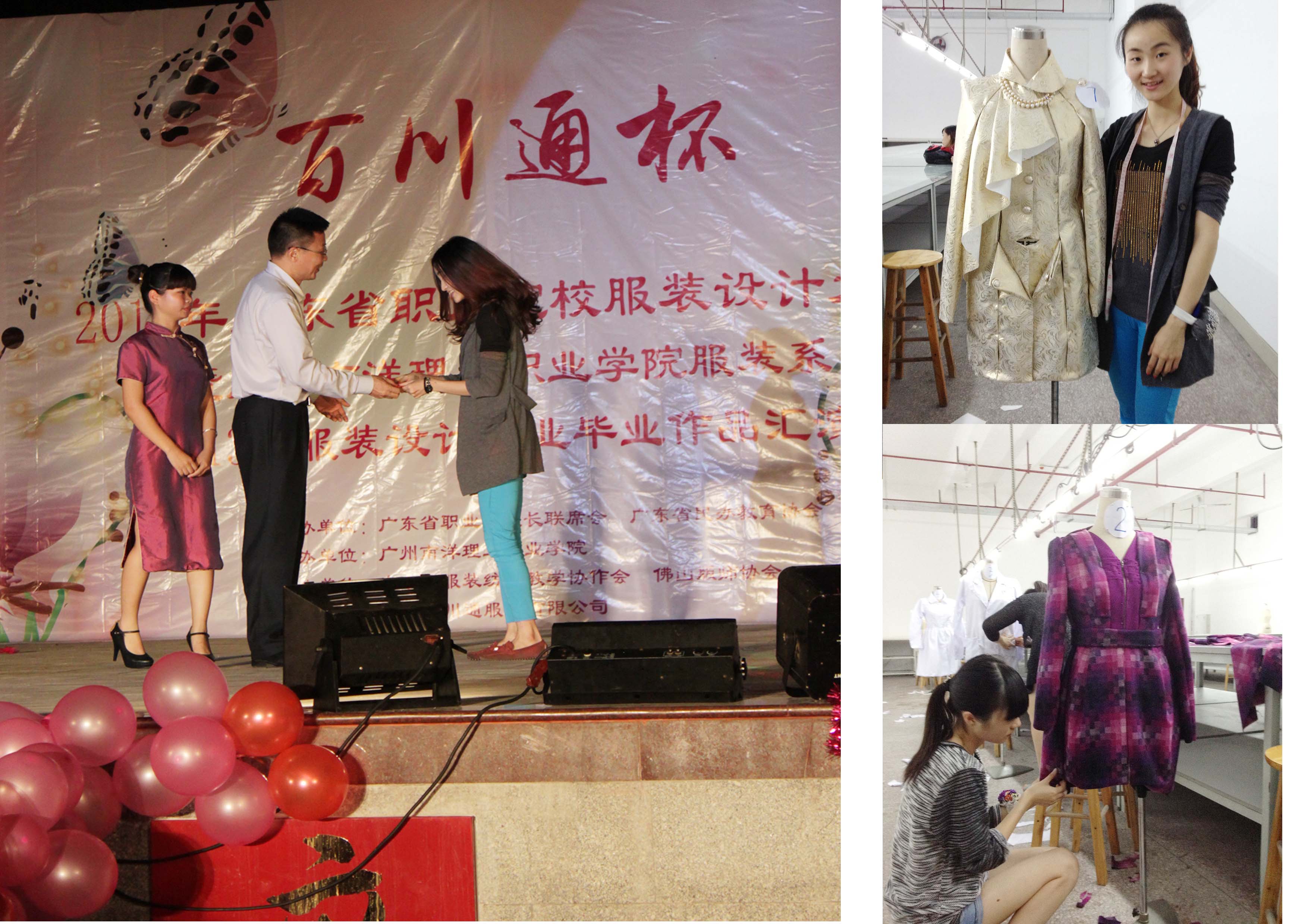 2013年11月10日,由广东省民办教育协会,广东省职业院校校长联谊会联合主办的服装设计大赛隆重举行,企业专家评委现场评分,决出一等奖一名,二等奖两名,三等奖三名。经过激烈角逐,我院服装设计专业王若玲和梁建瑜以其独特的色彩和面料搭配分别荣获一等奖和二等奖,为学院赢得了荣誉,同时充分体现了我院服装设计专业的雄厚实力。