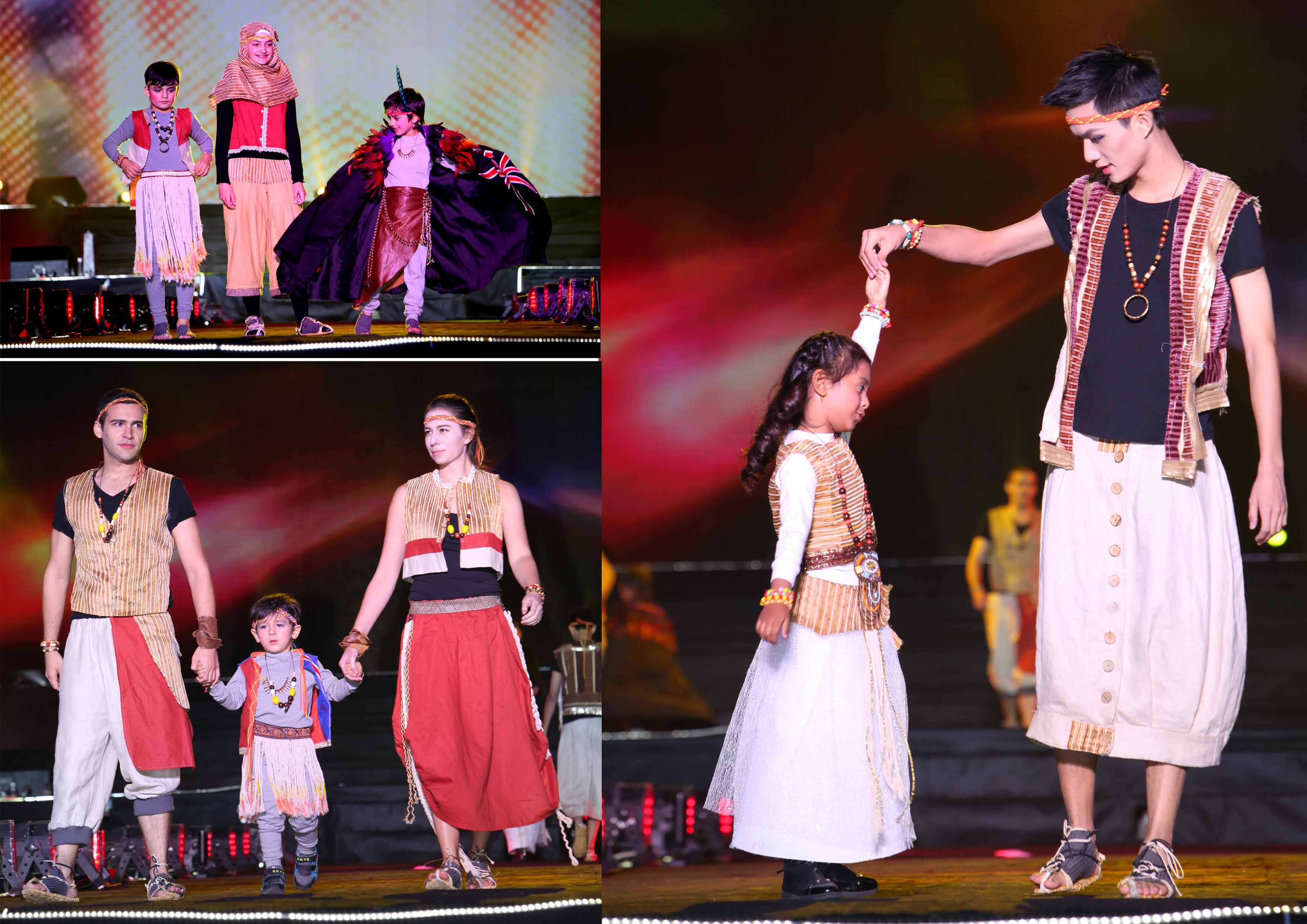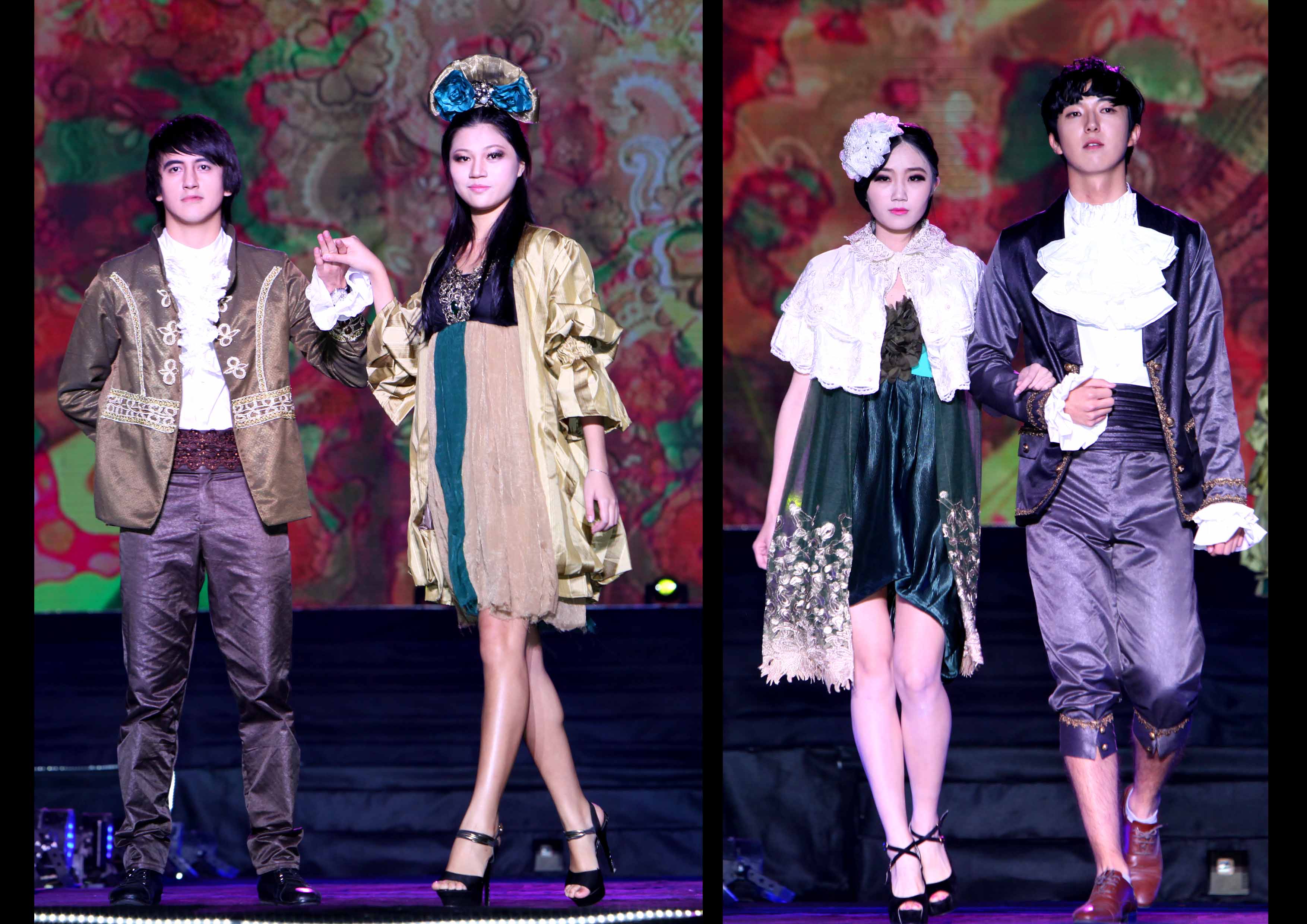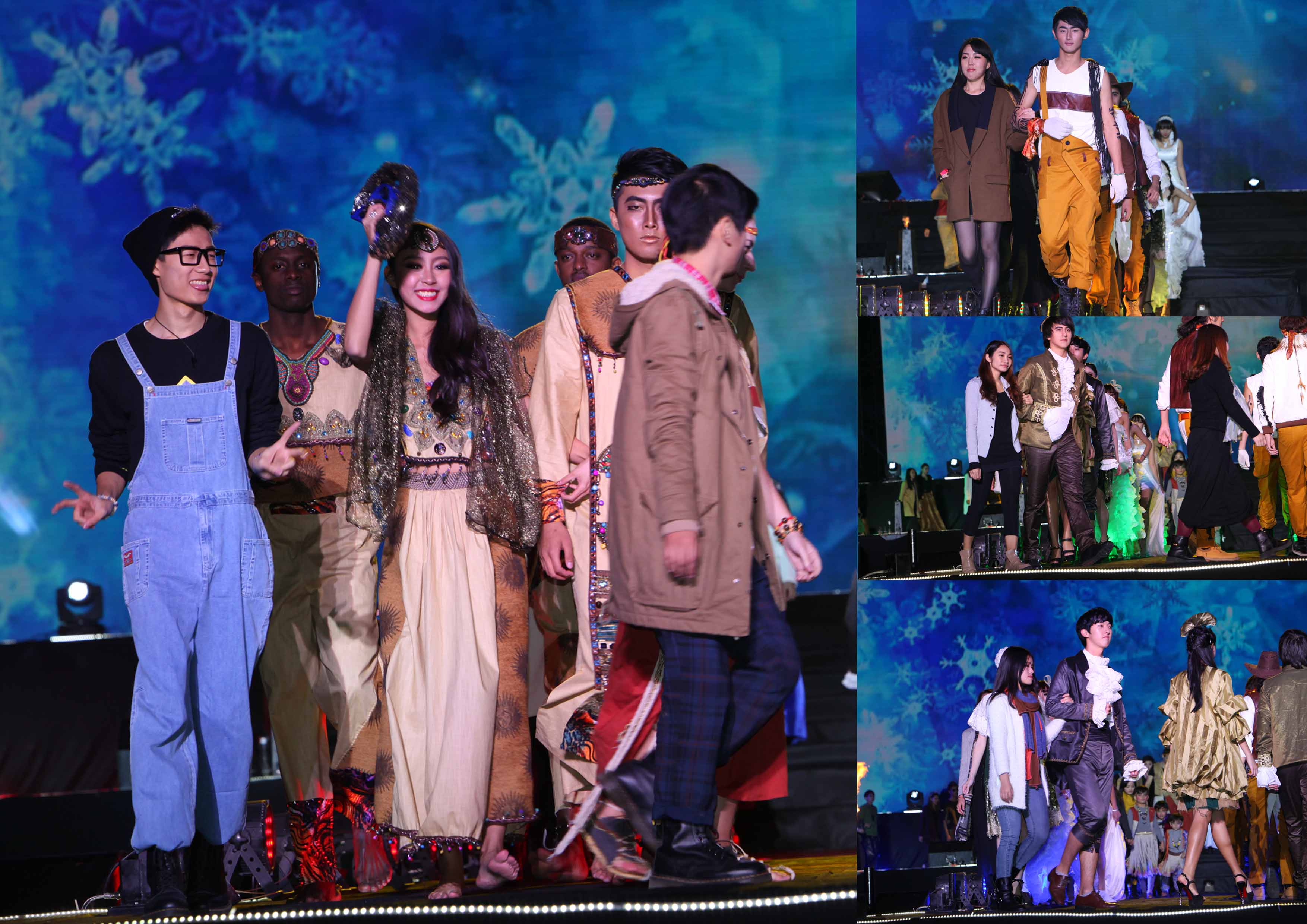 本次“五大洲”服装秀是由服装设计教研室杨云老师、尤志华老师带领11、12级服装设计专业学生黄佳、李佳佳、林小龙、卢楚仪、赵紫萱、何楚媚、郭嘉琦、陈玉茹、陈小洁、冯小凤等同学共同制作完成。还特意邀请了来世界各地的在校留学生、集团幼儿园小朋友参加走秀,使得秀场眼前一亮欢呼声四起。