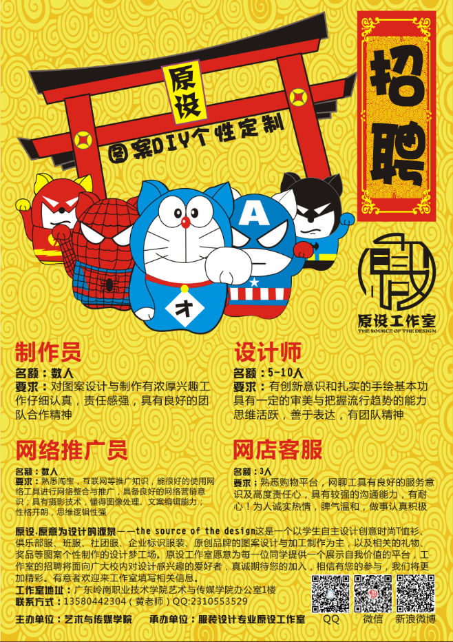 艺术与传媒学院服装设计专业原设工作室招聘正在火热进行中,喜欢个性图案设计的你怎么能错过呢?真诚期待你的加入,有兴趣的帅哥美女们快来我们的工作室报名哦!