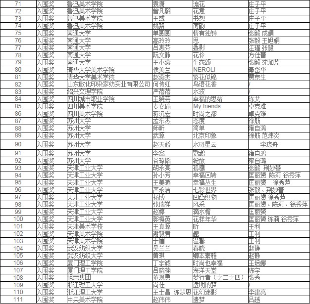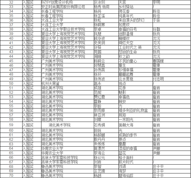 获奖名单信息