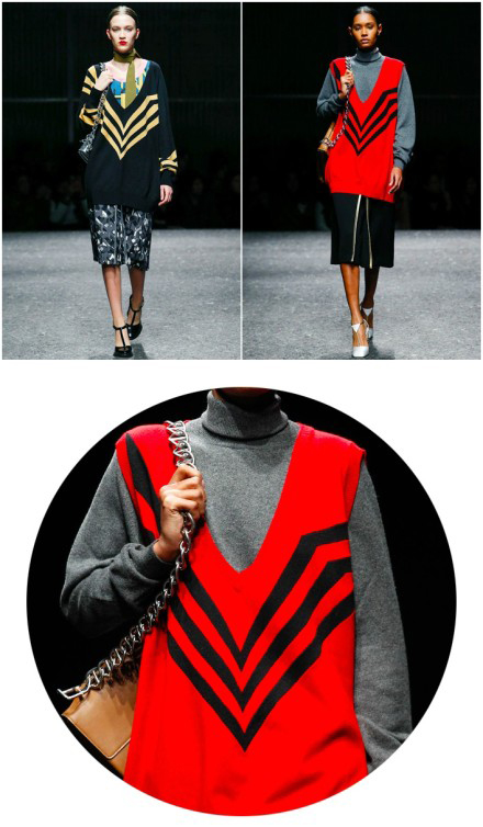 Prada 2014秋冬系列皮草配薄纱,极简吊带裙配繁复花大衣,既矛盾都也和谐相处。