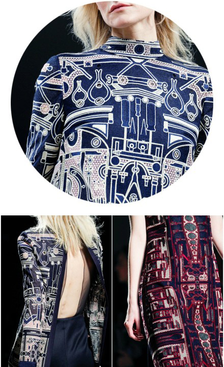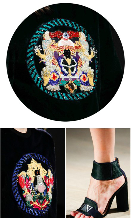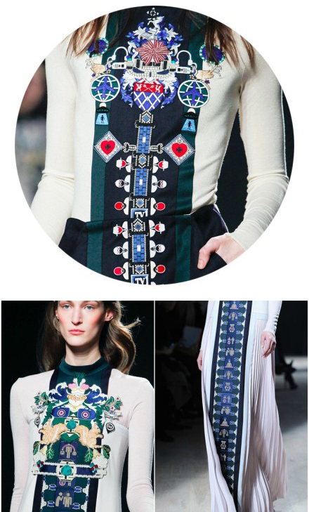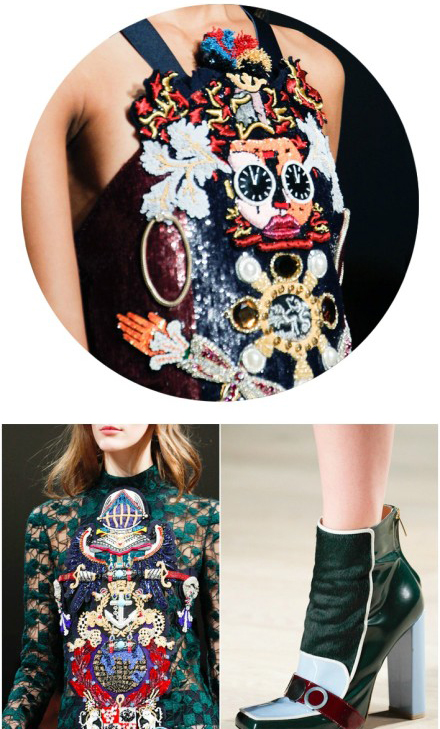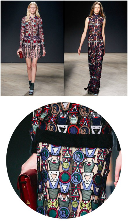 Mary Katrantzou2014秋冬灵感来源于豪宅、邮票、标志徽章,用刺绣和镶嵌手法做出精妙绝伦的服装。