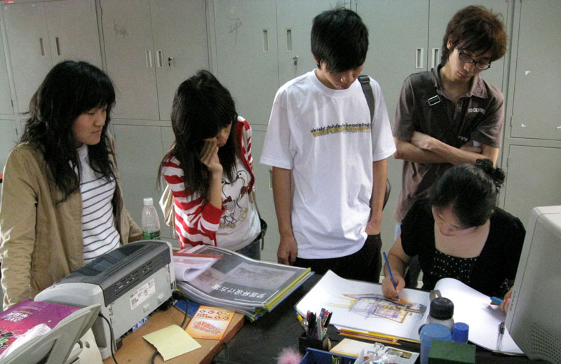 ■参赛带队教师陈春花老师在为参赛学生进行辅导 |