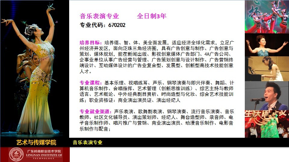 声乐(艺术歌曲、通俗、表演唱): 钢琴(演奏技巧、器乐表演技巧) 舞蹈(民间舞、现代舞、古典舞、流行舞) MIDI音乐制作 音乐理论(和声 ...