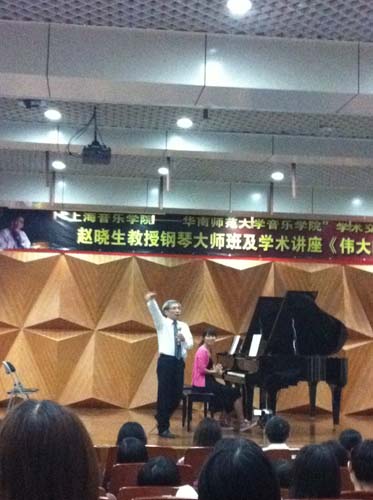 作为一位跨界飞行于钢琴理论及作曲两个领域的教育家,赵晓生教授对音乐本体深入细致、入木三分的剖析,不但展示了他出众的才智、对音乐极为深厚的洞察力,他孜孜不倦、日积月累的刻苦钻研精神亦令所有在艺术道路上探索的人钦佩、赞叹、感慨!更给我院音乐表演专业的学生上了一堂生动的钢琴课,课后学生有很多感慨。