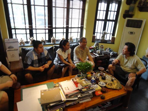 ■装饰艺术设计教研组教师与思哲设计公司总经理罗思敏先生洽谈交流校企合作、专业建设情况(罗先生左一) |