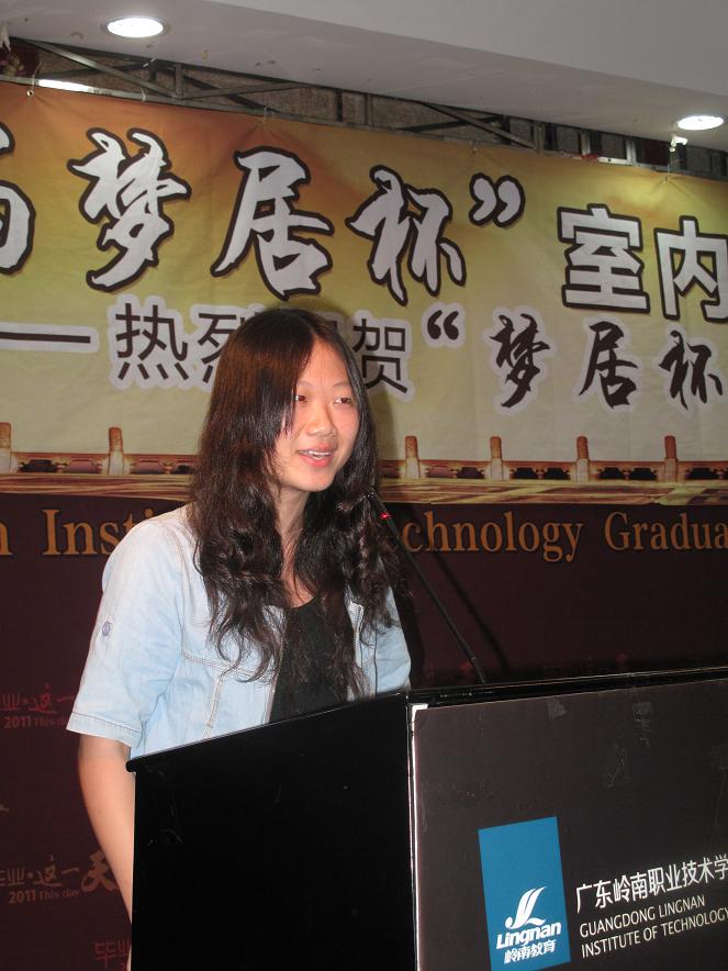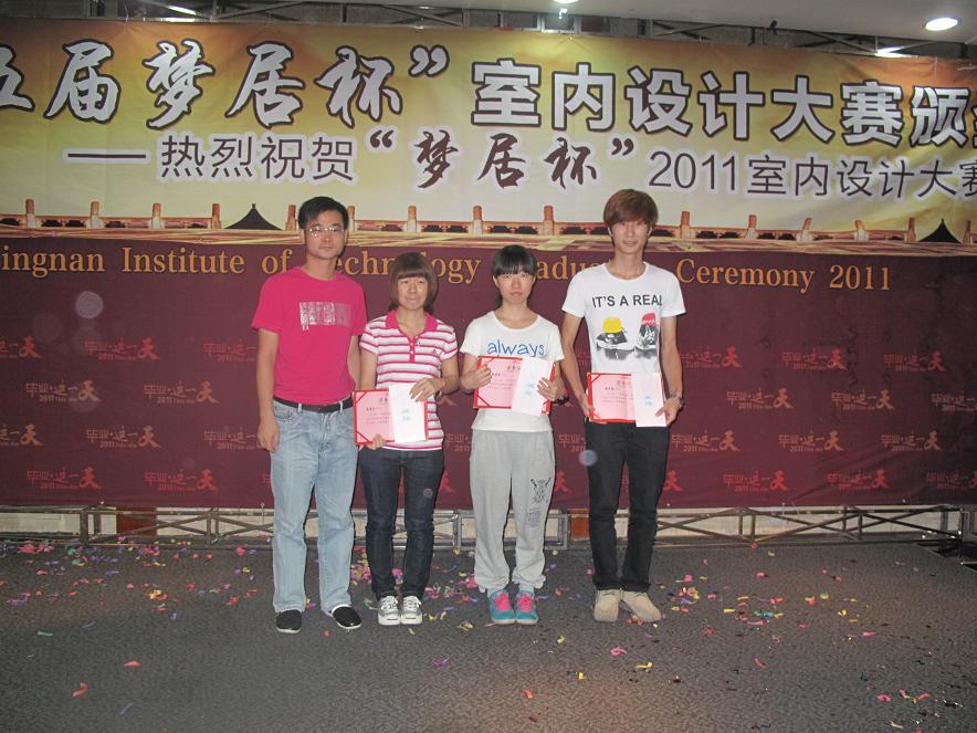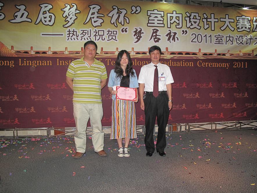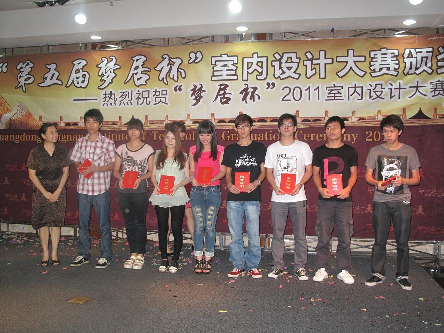 由广东岭南职业技术学院和中山梦居装饰工程有限公司共同举办的第五届“梦居杯”室内装饰设计大赛颁奖典礼于2011年6月29日上午在学院图书馆五楼报告厅胜利闭幕。 参加本次大赛的企业和学院领导嘉宾分别有:中山梦居装饰工程有限公司黄嘉林董事长、王炳林总经理、行政助理王蓉;广东岭南职业技术学院副校长郧建