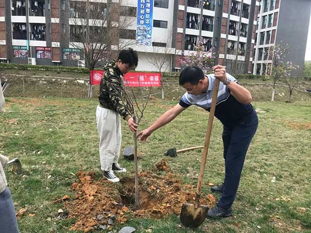 3月12日,明德书院全体辅导员带领19级各班学生代表开展了“种下希望,一植幸福”为主题的美化校园植树活动。