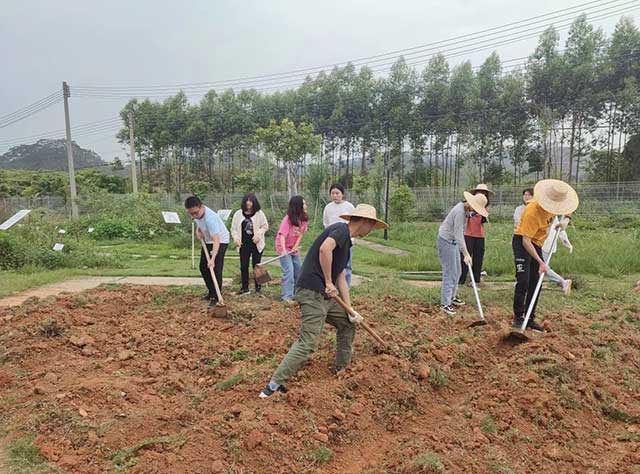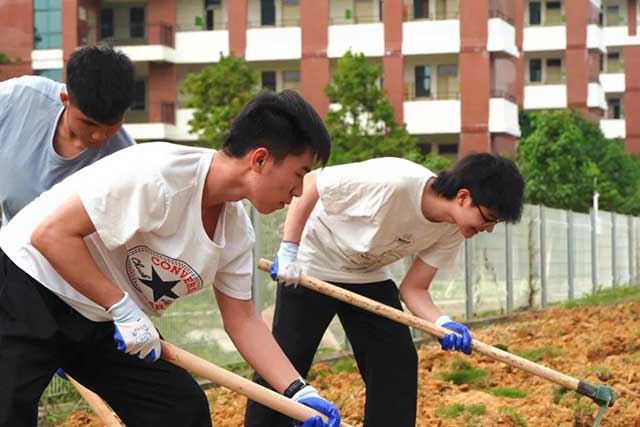 ▲学生们积极参与土地开垦(笃学书院)