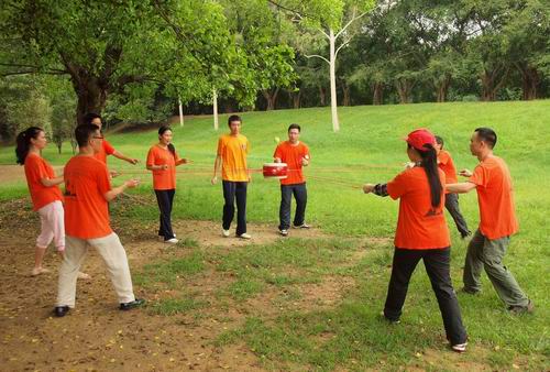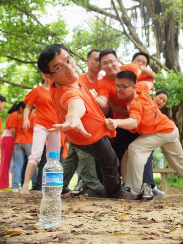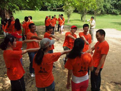 下午的培训,在“高山流水”游戏和趣味的惩罚中开始了,紧接着的是重点项目定向越野。每个小组将会被分为两个小分队,每个分队的资源只有一副地图,一个指北针,一部手机和一份任务书。在定向越野的过程中将会遇到3个挑战游戏,分别是“T字拼图”、“一字塞车”和“冰海沉船”。在两个半小时的定向越野过后,进行了本次拓展培训的最后一个项目“盲人方阵”。最后在学员团队的共智慧和配合下排出了“我爱华美”的字样,最后大家合影留念。