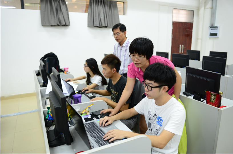 钟秋萍老师和彭刚老师在清远校区分别指导各自的团队