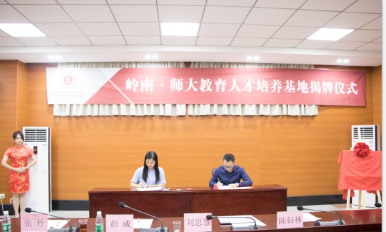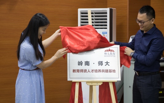 最后,张丹院长与吴镇洲总经理共同签署校企合作协议书,并为教育人才培养基地揭牌。揭牌仪式的顺利举行,标志着岭南学院教育师资培养基地建设迈向新的征程。