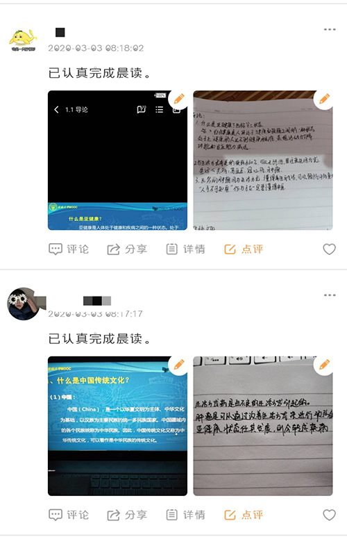 我们虽未能面对面学习,却通过屏幕中的一张张照片,感受到了岭南学子的自律,宅家学习的充实、专注与奋进。“停课不停学”在家也要保持满满的学习仪式感。让我们一起看看博雅云早读的正确打开方式: