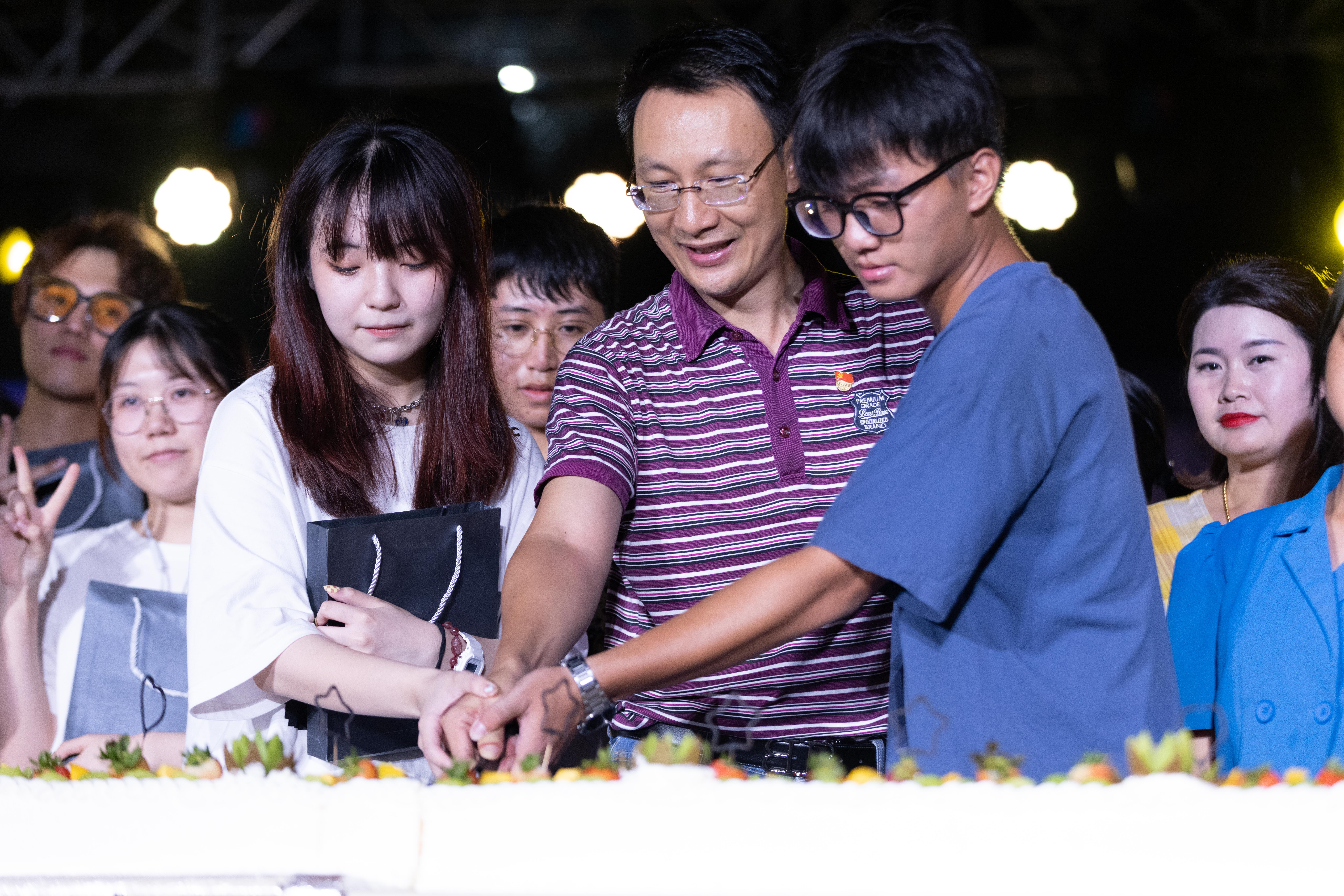 除了精彩的节目,晚会主创团队还在“开学礼”的仪式感设计上下足功夫。学生处卜佳锐处长带领全体新生唱响《祖国不会忘记》,表达对建国 72 周年的美好祝愿;陈蒸浩老师指导全体同学学习抱拳礼,引导广大新生加强对尊师重道的理解,使充满仪式感的上下课礼在校园里有了更好的延续;校级组织干部的集体亮相,给新生的大学生活带来更多新期待;2米长的大蛋糕,为9月份的寿星们和伟大祖国送去生日祝福;DJ吴文超同学,用他的打碟技术调动了全场气氛,开启了开学礼的狂欢。多种仪式的创意串联起节目层层递进的主题,铺开对大学生活的新的展望。