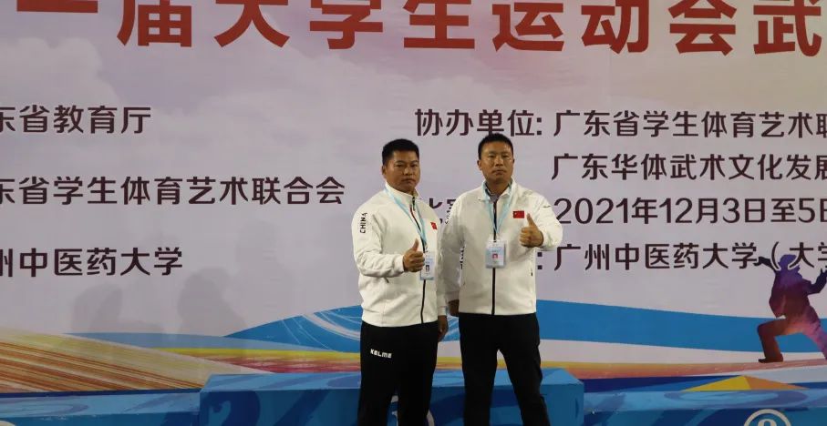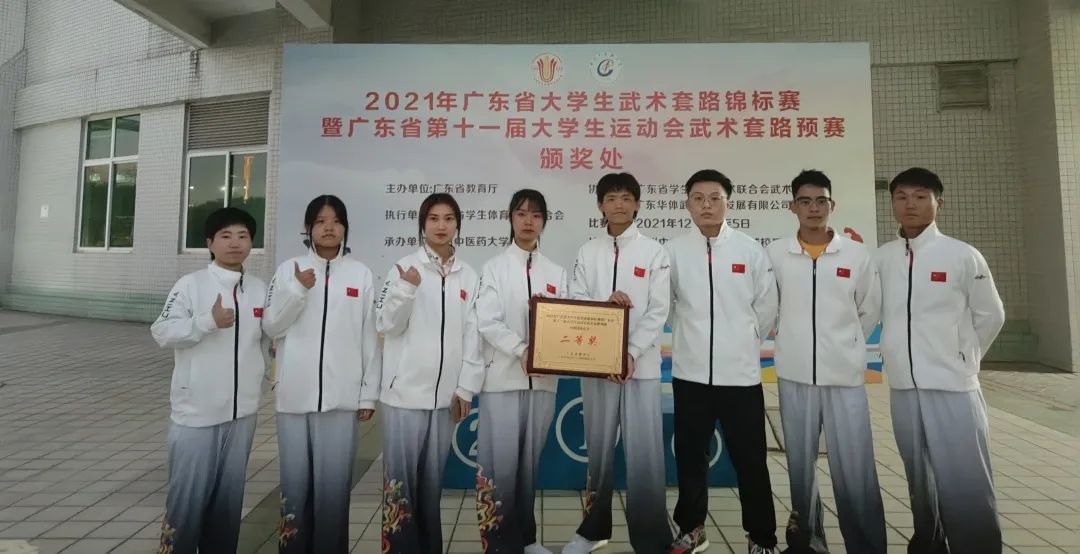近日,广东省大学生武术套路锦标赛暨广东省第十一届大学生运动会武术套路预赛在广州中医药大学(大学城校区)圆满举行,我校武术队在博雅教育学院赖海勇、王彦忠、罗智三名体育教师带领下,经过三天奋战最终获得丙组团体总分二等奖,8人成功晋级广东省第十一届大学生运动会武术套路比赛决赛的好成绩,另外,赖海勇、王彦忠两位指导老师被评为“优秀教练员”。