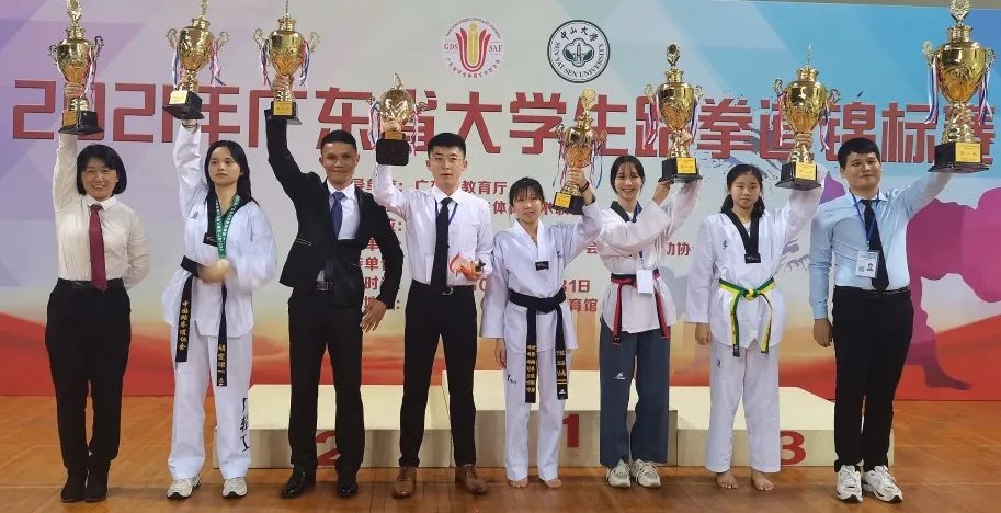 此次比赛是我校体育健儿继首次参加省大学生跆拳道锦标赛后再创佳绩。在2021年广东省大学生跆拳道锦标赛上,我校体育健儿经过顽强拼搏,最终斩获3金、2银、2铜、团体总分一等奖的好成绩,主教练陈蒸浩老师获得“优秀教练员”称号。
