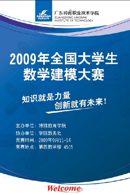 在学院领导,博雅学院院长以及各位老师的支持下,广东岭南职业技术学院2009年全国大学生数学建模竞赛培训正在激烈的进行。由6月11号陈敏娜老师开始培训,到9月6号结束,中间数学教研室各老师都从自己的特长出发,为学生排忧解难,使得学生从开始对数学建模一无所知到现在基本了解整个程序。(文/陈敏娜,图/杨智翼)