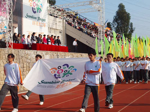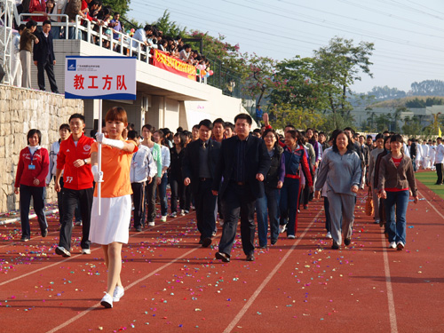 “本次校运会、趣味运动会成果显著!广大师生要把本次校运会体现出来的顽强拼搏、团结奋进体育精神运用到学习工作上运用到做人做事上!校运会结束了,但阳光工程要持续开展下去,把体质提高把学习工作做好,成长为岭南的骄子!”俞仲文校长在闭幕式上说。