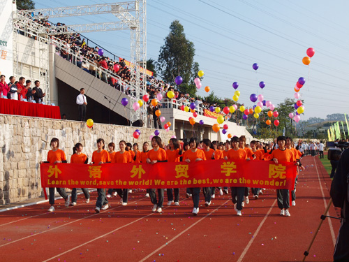 2009年12月11日至12日,第九届田径运动会暨首届教职工趣味运动会在学院田径场隆重举行。此次校运会由博雅学院承办,共设置22个竞技项目、9个趣味活动。两天的竞赛日中,共决出了24金牌,11人次打破六项校记录,最终医药学院、商学院东校区获得了团体总分第一名,商学院东校区获得了精神文明奖,商学院南校区获得了最佳组织奖!