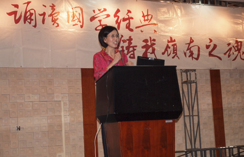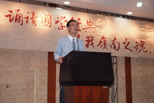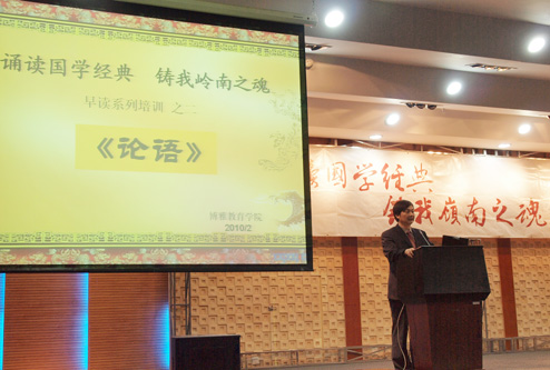 2010年3月4日下午14:00在学院图书馆五楼会议室举办了主题为“诵读国学经典,铸我岭南之魂”的国学早读“论语”教师培训讲座,由博雅学院大学语文与国学教研室主任陈淑仪主讲,尚燕乔院长主持,来自学院近400名教职工参加了此次培训学习(图/杨智翼,文/朱青)。