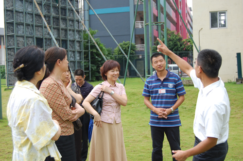 此后海关团队还参观了我院拓展培训基地,并就个别高空项目做了特别了解,陪同领导博雅教育学院院长尚燕乔、办公室主任杨智翼与拓展培训干事周云就“跳出真我”、“空中断桥”、“攀岩”、“巨人梯”等高空项目做了详细介绍。