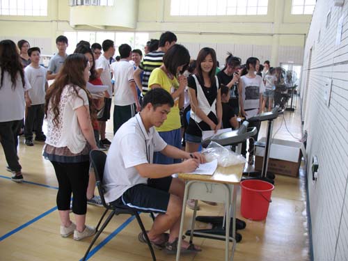 2010年8月31日,岭南学院本学期学生体质测试工作正式启动。本次测试将历时一个月,届时我院大二、大三年级近八千多学生参加此次测评。由于本次测评采用了全新的仪器,体育教研室在此之前进行了精心的准备,保证测试的顺利进行。本次测试的安排和流程跟以往相比呈现新亮点:在班为单位的基础上,以12人为单位小组,按学号进行各项目的测试,每次测试完毕仪器自动升号,简化了输入学号的程序,提高体质健康测试效率。