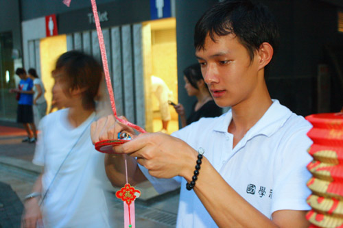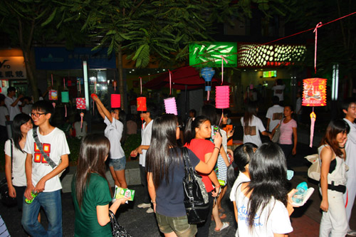 2010年9月17日星期四晚上7点到8点半,岭南风情街人潮涌涌,由博雅教育学院与国学社、茶艺协会在此联合举办中秋游园活动。