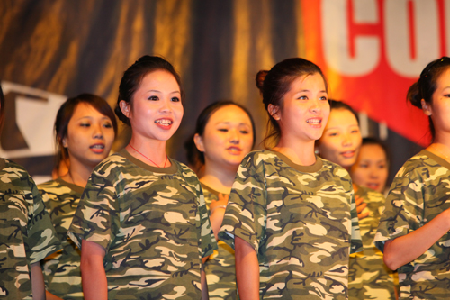 10级学生带给大家的是红歌联唱,三首耳熟能详的歌曲使得台上台下交流在一起,活跃了现场气氛。