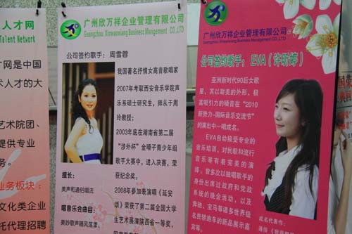 《音乐表演专业》充分利用这一机会,与广州欣万祥企业管理有限公司共同合作,推出了年轻的周雪蓉教师与许步欢同学。参会的很多演艺公司对她们表示了很高的合作意向,我们的宣传板块成为了会场一道靓丽的风景。
