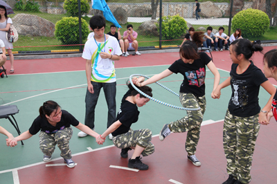 首先团队在展示中我院以一个叠罗汉的方式出场,另大家大开眼界。其后,在第一轮的呼啦圈传递比赛中,博雅学子们以他们矫健灵活的身手以2分36秒的好成绩领先,取得了第一轮的胜利。