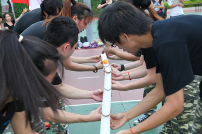第二轮、第三轮的项目分别为兵乓球传递与南水北调,同学们齐心协力,通过一次一次的复演,一次一次的彩排,不断琢磨项目的最佳方案,最终取得了全校第一的好成绩。