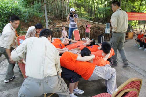 “血战沙场”是当天拓展培训活动的主要内容之一,鏖战六轮,哪个队能独孤求败,笑傲江湖?势必会是一场苦战!