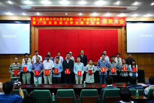2011年10月29日上午9:00时,广东省首届数学竞赛如期在华南理工大学大学城校区举行。我校数学教研室彭刚、刘广平、李晶、钟秋平四位老师带领七十五位同学参加了比赛。通过上午的紧张决赛和下午组委会紧张的改卷、评卷等工作。2011年10月30日零时成绩揭晓。2011年10月30日上午9:00时,广东省首届数学竞赛颁奖大会如期在华南理工大学五山校区举行。在这次颁奖大会上,我校取得了傲人佳绩。广东省高职类三等奖共十八人,我校有六人获得此殊荣。另外,我校还获得广东省首届数学竞赛优秀组织奖,在高职高专院校中仅此一家。彭刚、李晶供稿。