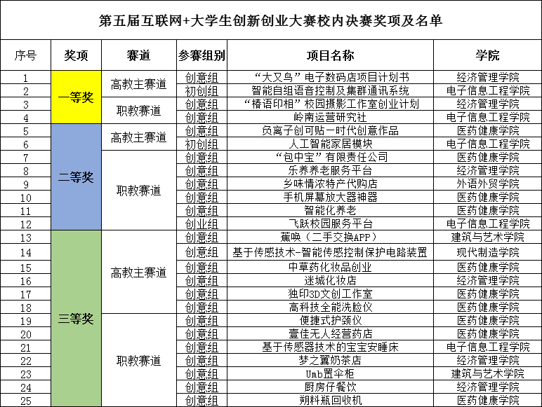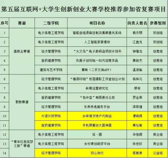 除了决出比赛奖项,本次校内决赛还决出了推荐参加第五届互联网+大学生创新创业大赛省复赛的项目。