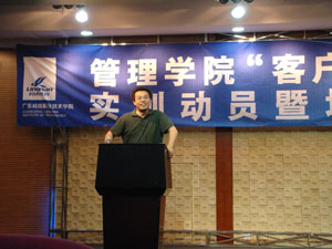 管理学院李旭穗院长在大会致辞中,畅谈了与广州科为信息技术有限公司合作开办《客户沟通能力》实训课程以来,所取得的成效。对参加本次实训同学的期许,和对未来课程改革的进一步思考。鼓励同学们要把握好本次机会,让自己在实训的过程中,端正心态,认真完成实训任务,体验工作,提升技能。