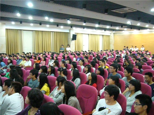 2010年11月15日晚,由管理学院主办,人力资源协会承办的一场围绕“在校园如何把自己锻炼成企业需要的人”的大学职业生涯规划及就业指导讲座,引起了我校广大学生的浓厚兴趣,主讲者华科教育总经理、国家二级心理咨询师黄波老师,用他充满魅力的人生经历,丰富的企业实战经验,实用的理论知识,风趣的语言,热络的互动游戏,为岭南学子们奉献了一场精彩纷呈的讲座。图书馆五楼报告厅爆棚,甚至有十几位同学站在教室的后面听完整场讲座。精彩的演讲数次被同学们热烈的掌声打断。