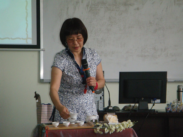 李旭穗院长从自身爱茶之缘说起,谈茶缘述茶艺聊人生。把自己生活之快乐归结于品茶,把自己身体之健康归功于饮茶。同时系统阐述了茶艺之十八般武艺:备具、涤具、温壶、鉴茶、投茶、养壶、冲茶、敬茶、品茶等的要领和内涵,传授了诸多精妙的茶道艺术。并以中国茶道精神核心“和”、“敬”,与岭南教工们分享了茶道即人道的同理性,给众人带来了三大启示:人力资源管理之选、育、用、留,如同选茶泡茶,选合适的人在合适的岗位做合适的工作是正道;茶如人生,历经沉浮,方得人生幽香是正道;云南大理三道茶,代表了三种人生境界,“一苦二甜三回味”,付出总有回报是正道。