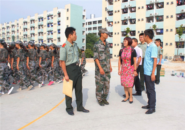 2012年9月18日上午,管理学院李旭穗院长、杨燕雄院长助理在二营营长的陪同下,对管理学院12级军训学生进行视察和慰问。