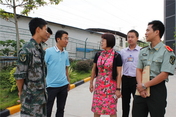 接着对承训官兵、参训学生以及带队辅导员进行了亲切的慰问,了解学生对训练强度的承受情况,以及与教官的配合情况。对学生们饱满的精神面貌,认真参训的严谨态度给予了肯定和表扬,让同学们倍受鼓舞。