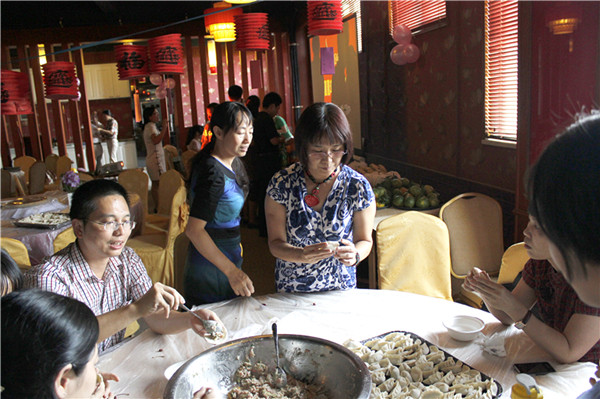 2012年9月27日下午,管理学院旅游酒店实训基地经典中式餐厅,一派喜气洋洋,热闹非凡的景象。追随学校“幸福岭南”理念,为营造幸福浪漫和谐欢乐的工作生活氛围,增进教职员工的“家”的归属感,建设温馨幸福的教工之家,管理学院全体教职员工在李旭穗院长的带领下,齐聚一堂开展了趣味盎然、轻松惬意的包饺子庆中秋共团圆主题活动。