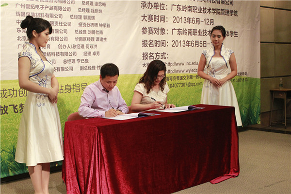 2013年6月5日晚,由广州市微宇照明科技有限公司主办,广东岭南职业技术学院管理学院承办的2013年大学生暑期“新三下乡”社会实践活动暨首届“微宇”环保天使创业大赛启动仪式在科技中心七楼报告厅隆重举行。广州市微宇照明科技有限公司董事长陆邦华、副总经理罗志刚;广东岭南职业技术学院副校长朱敏,招生就业中心副主任王振光,学生事务中心学务长卜佳锐,校企合作管理中心主任叶亚芳,管理学院院长易丹华、院长助理杨燕雄;大赛技术团队成员总工程师龙正华等8 人,大赛创业导师团成员:广州市巨福电子有限公司总经理蒋遂谷、广州爱拓电子产品有限公司总经理徐创坤、辉晟包装材料有限公司总经理郭亮辉、东莞市上庭装饰有限公司总经理刘傅仕南、广州市权信教育创办人何双洪、广州市凡度网络科技有限公司经理卓芳等13家知名企业13位创业成功人士,以及管理学院各专业学生代表600人共同出席了本次启动仪式。